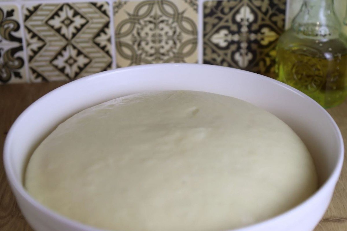 Gdy mąka wchłonie całą wilgoć, dodaj do składników olej i sól. Zagnieść ciasto. Gdy ciasto będzie już gładkie, włóż je do miski i przykryj folią spożywczą. Umieść obrabiany przedmiot na godzinę w ciepłym miejscu.