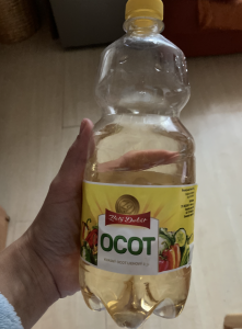 Najpierw wsyp sól do naszego pojemnika. Następnie dodajemy ocet. Wstrząśnij razem z solą i octem. Najlepiej odstawić na około godzinę, aby sól całkowicie się rozpuściła.
