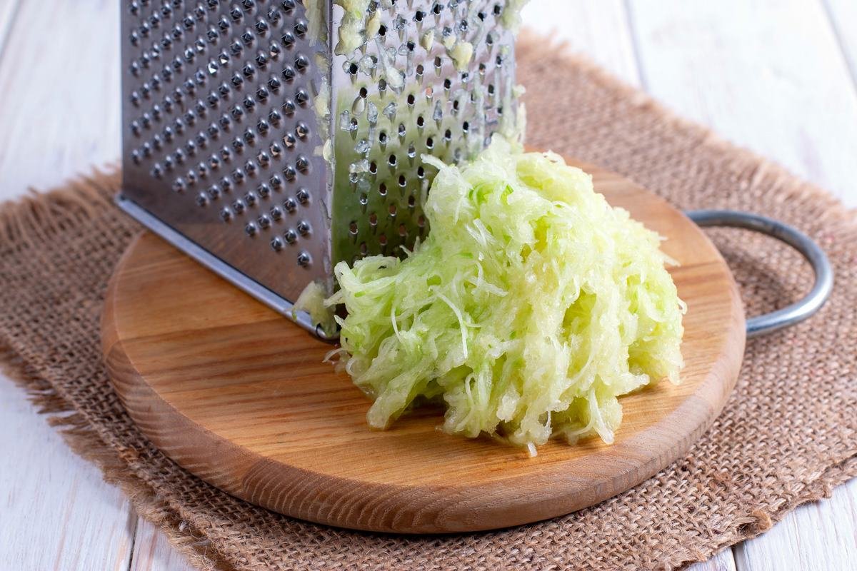 Najpierw musisz zetrzeć cukinię na tarce, a następnie ją posolić i odstawić.