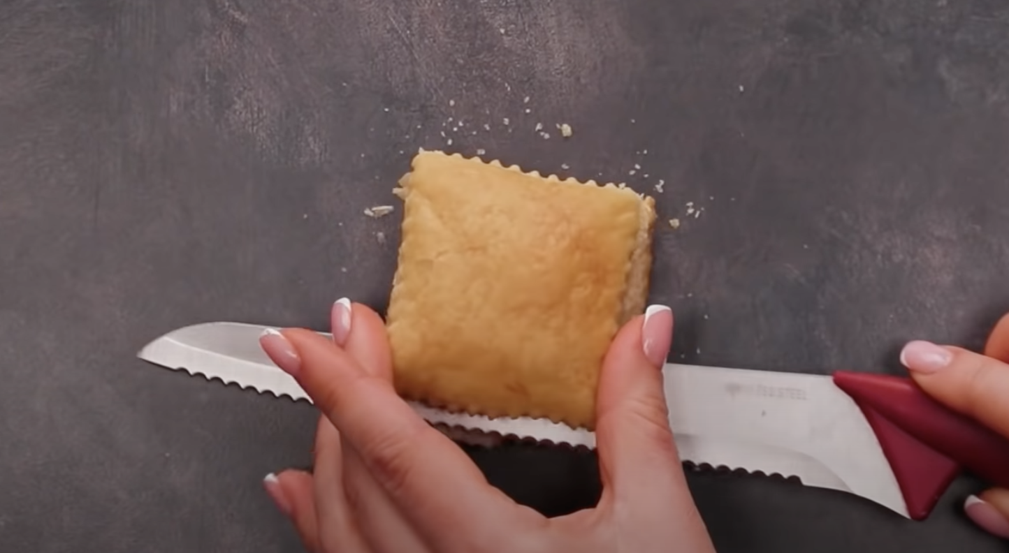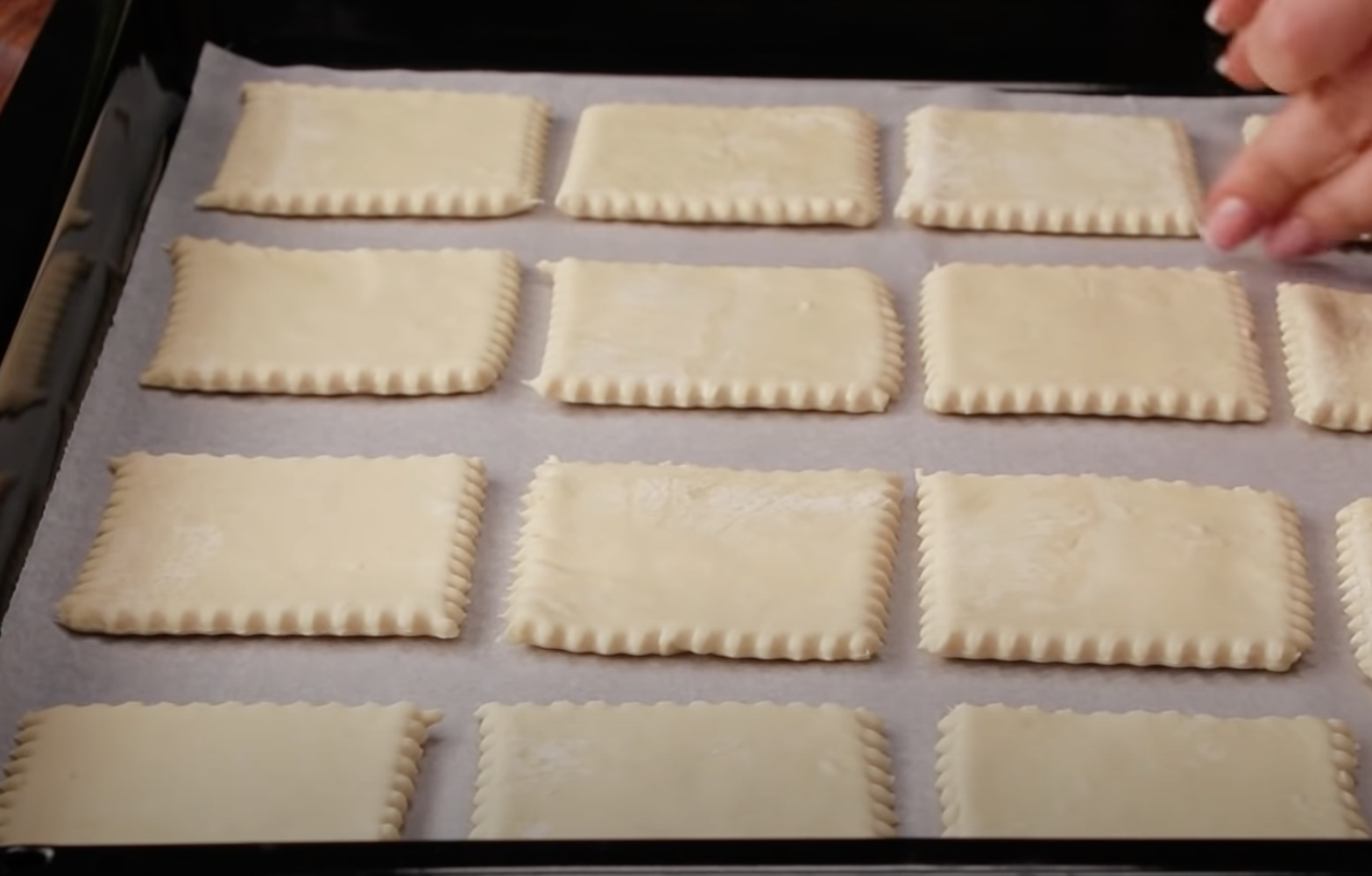 Ciasto połóż na blacie i pokrój na kwadraty.
