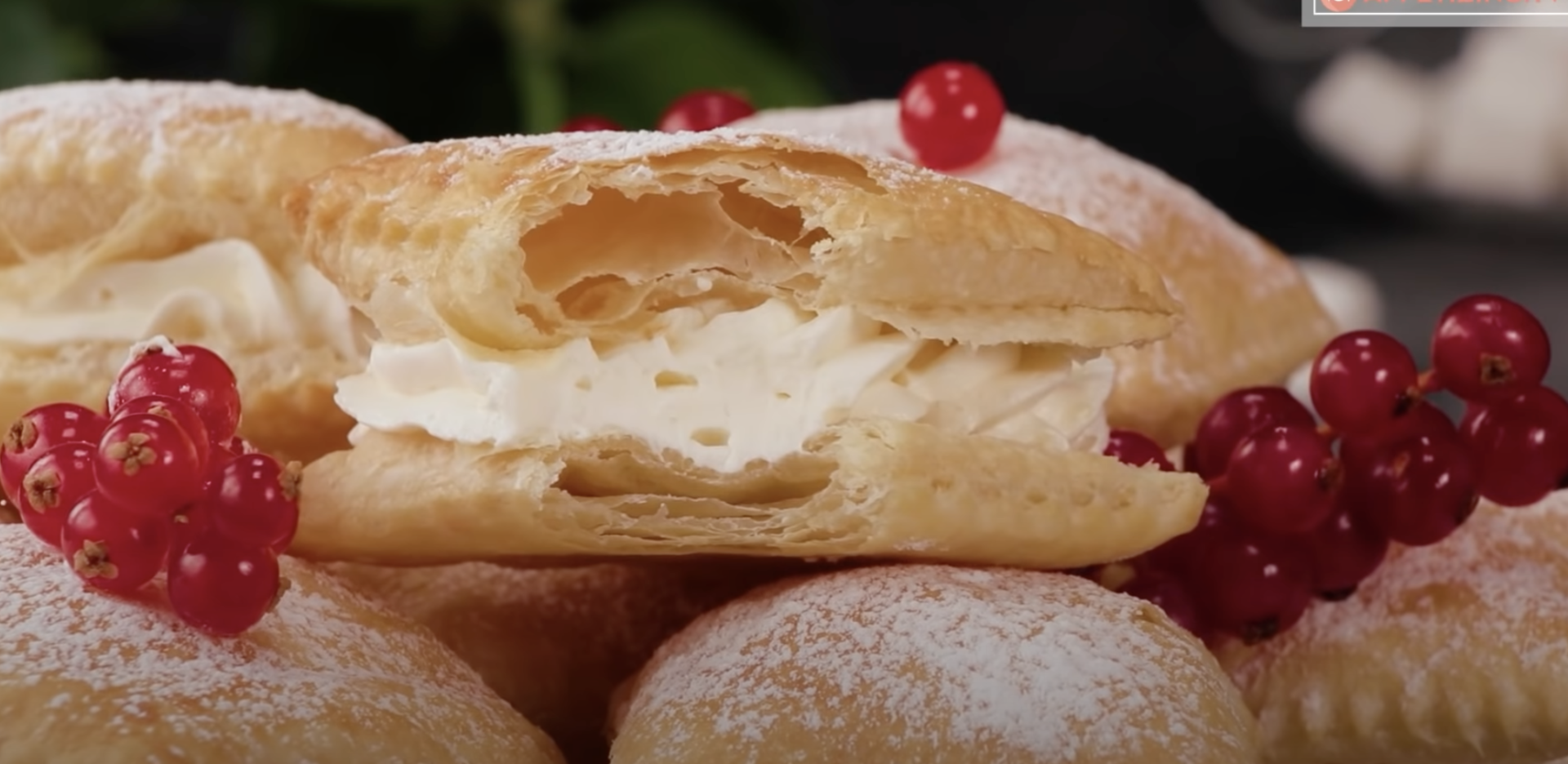 Pyszny, idealnie słodki deser z ciasta francuskiego: Wystarczy, że upieczesz i i wypełnisz kremowym nadzieniem.