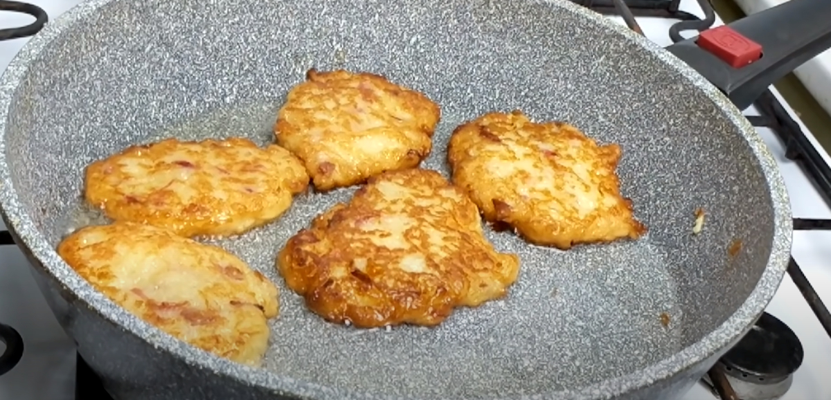 Wlej olej na patelnię. Podgrzej i za pomocą łyżki uformuj małe naleśniki, które opiekaj z obu stron na złoty kolor.