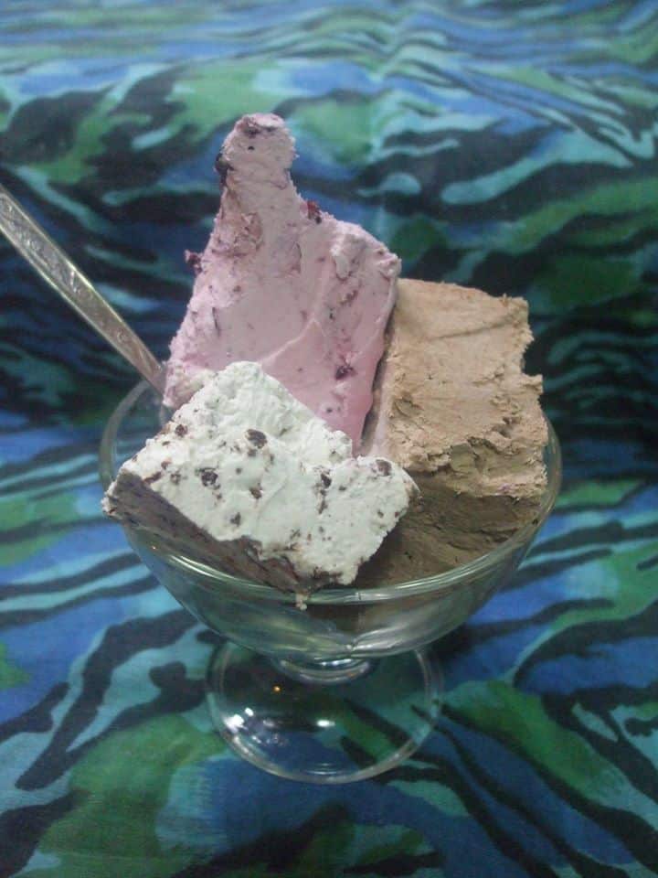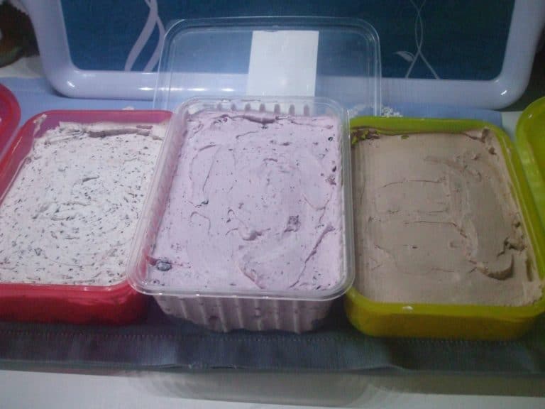 A w trzecim dajemy owoce. Ja dodałam jagody. Lody są pyszne z każdym owocem.