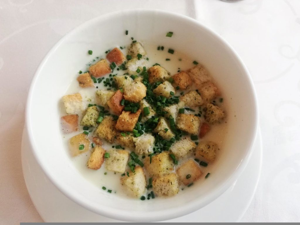 Do zupy dodać posiekaną natkę pietruszki i grzanki. Podajemy smażonego kalafiora z otartą skórką z cytryny.