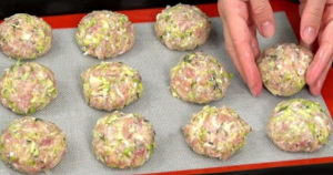 Ułóż małe, dobrze uformowane kotlety na blasze do pieczenia, przykrywając ją papierem pergaminowym. Należy uważać, aby plastry nie były zbyt blisko siebie.