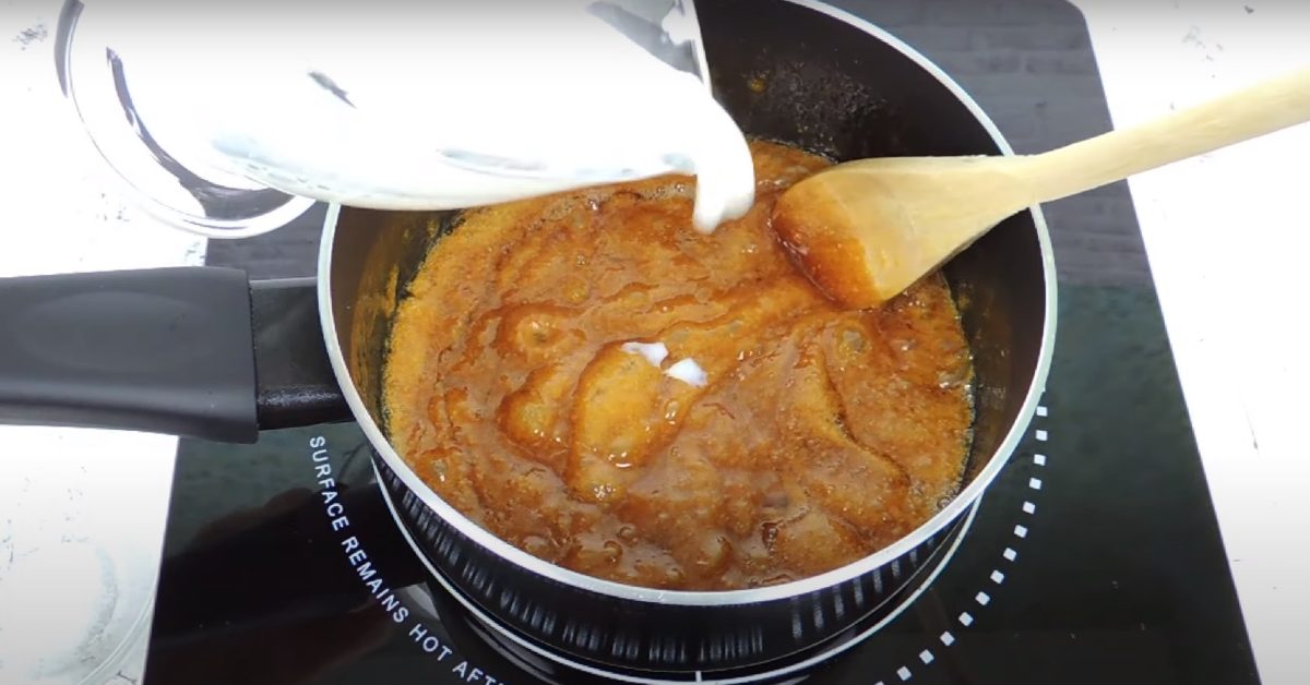 Gotuj karmel przez 1 minutę, a następnie zdejmij z ognia. Przełóż do słoika i wstaw do lodówki.
