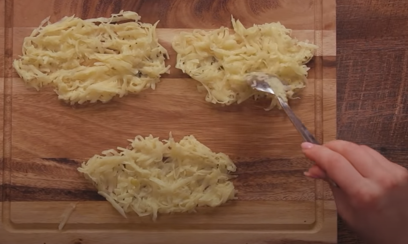Przygotowaną masę ziemniaczaną ułóż na desce do krojenia tworząc 3 placki.