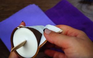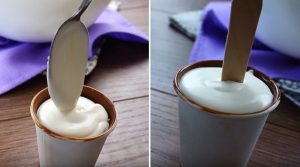 Po schłodzeniu mleka wyjąć filiżanki i wlać do nich masę śmietankową. W każdym kubku umieścić patyczek.