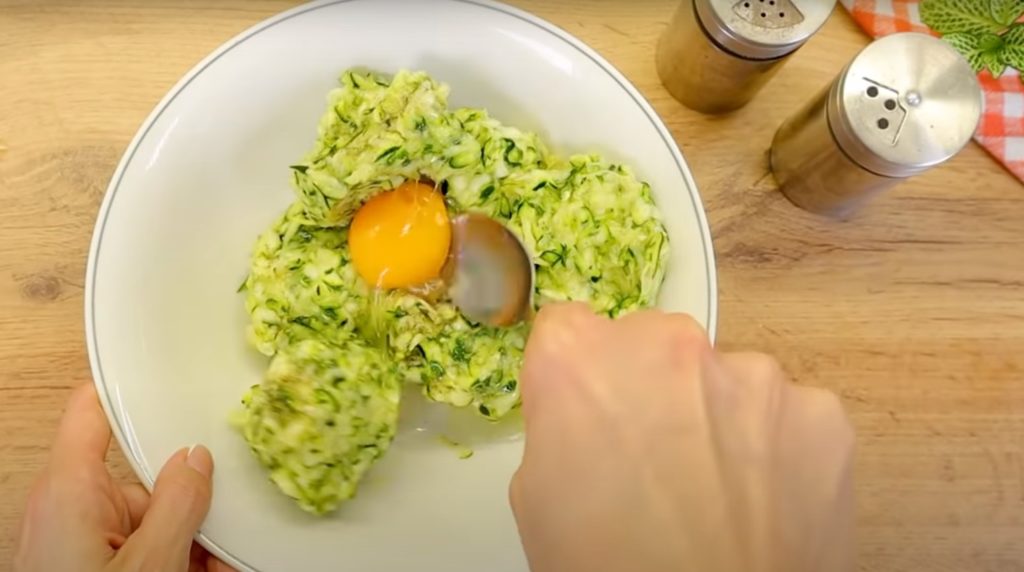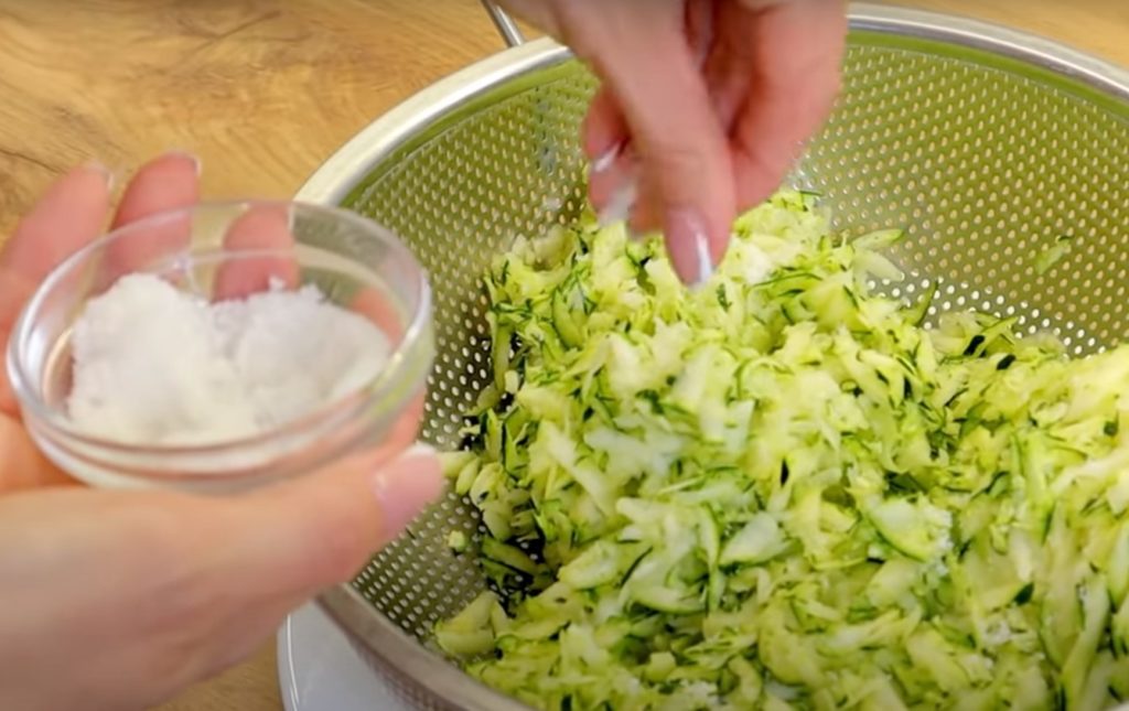 Umyj cukinię i zetrzyj na grubej tarce. Włóż do sitka, posól, odstaw na 15 minut, aby wypuściła sok, a następnie go wyciśnij.
