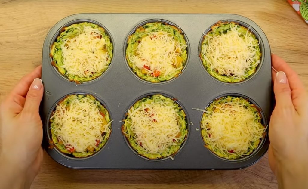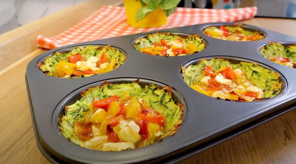 Pieczone warzywa wymieszać z pokrojonym serem feta, jajkiem. Napełnij upieczone babeczki z cukinii tym nadzieniem .