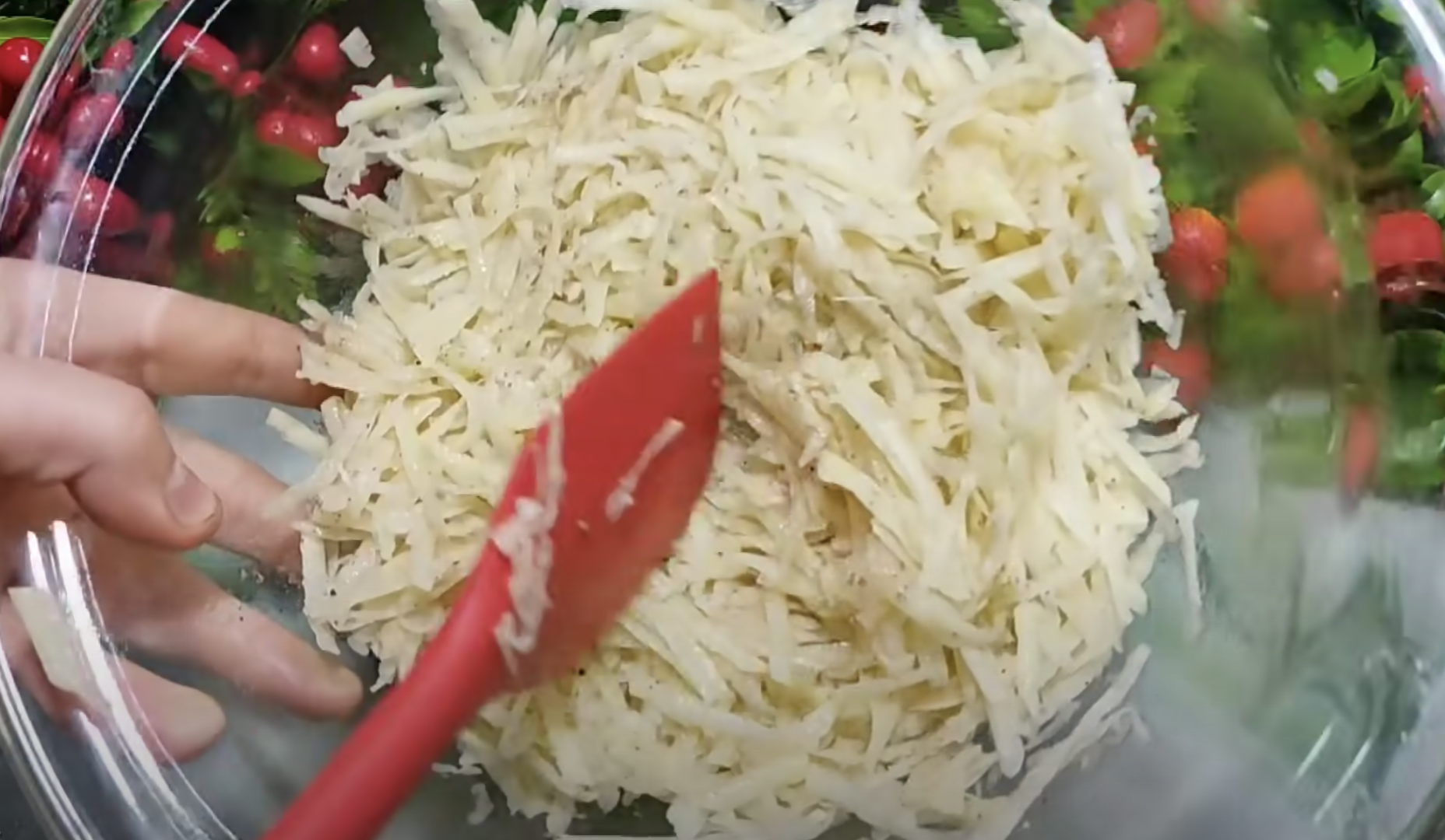 Ziemniaki zetrzyj na grubej tarce i wymieszaj z solą i pieprzem do smaku.