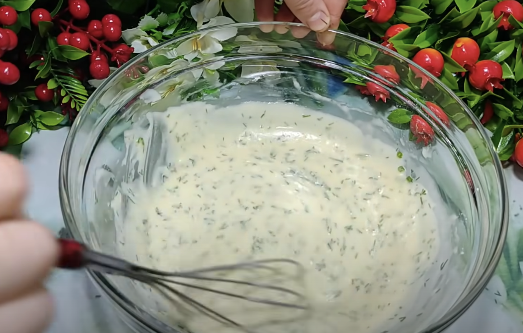 Dodaj mąkę i mieszaj masę, aż będzie gładka. Drobno posiekaj pęczek kopru i wymieszaj z ciastem.