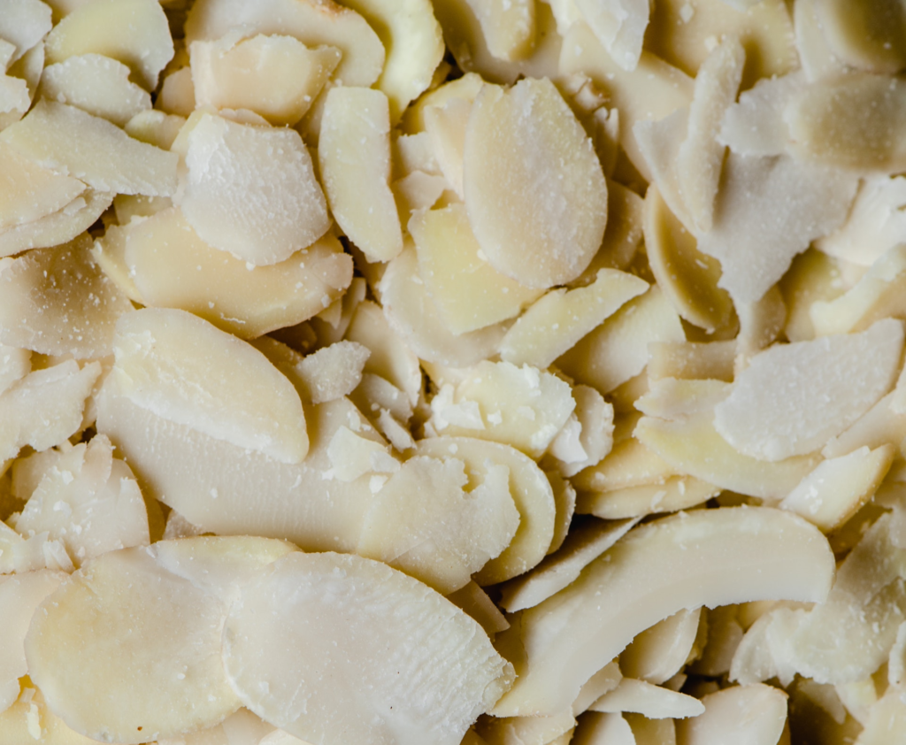 Krem posyp płatkami migdałów i cukrem pudrem. Umieść blachę w nagrzanym piekarniku w temperaturze 140°C. Piecz przez 35 minut.