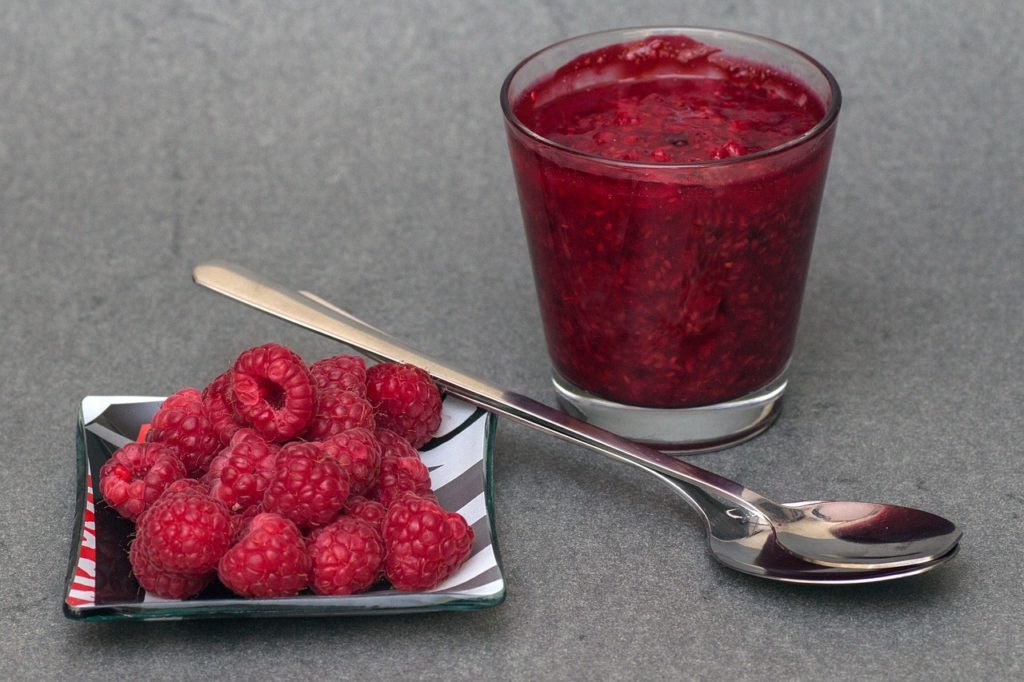 W garnku na kuchence umieść mrożone maliny. Dodaj cukier i gotuj na małym ogniu, aż się rozpuszczą. W szklance wymieszać skrobię z wodą, wlać do roztopionego puree i mieszać do zgęstnienia.