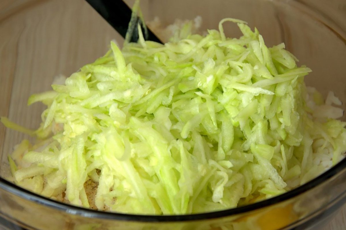 Obierz cukinię i marchewki. Zetrzyj warzywa na tarce. Posól i dokładnie wymieszaj. Pozostaw na 15 minut, następnie odciśnij nadmiar płynu.